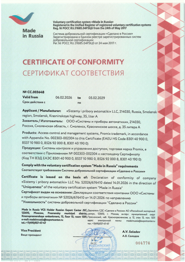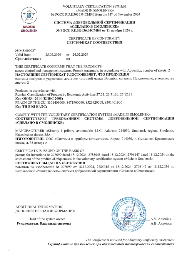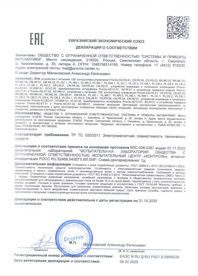 Декларация о соответствии. Система Promix-Bank, контроллеры (скачать) |